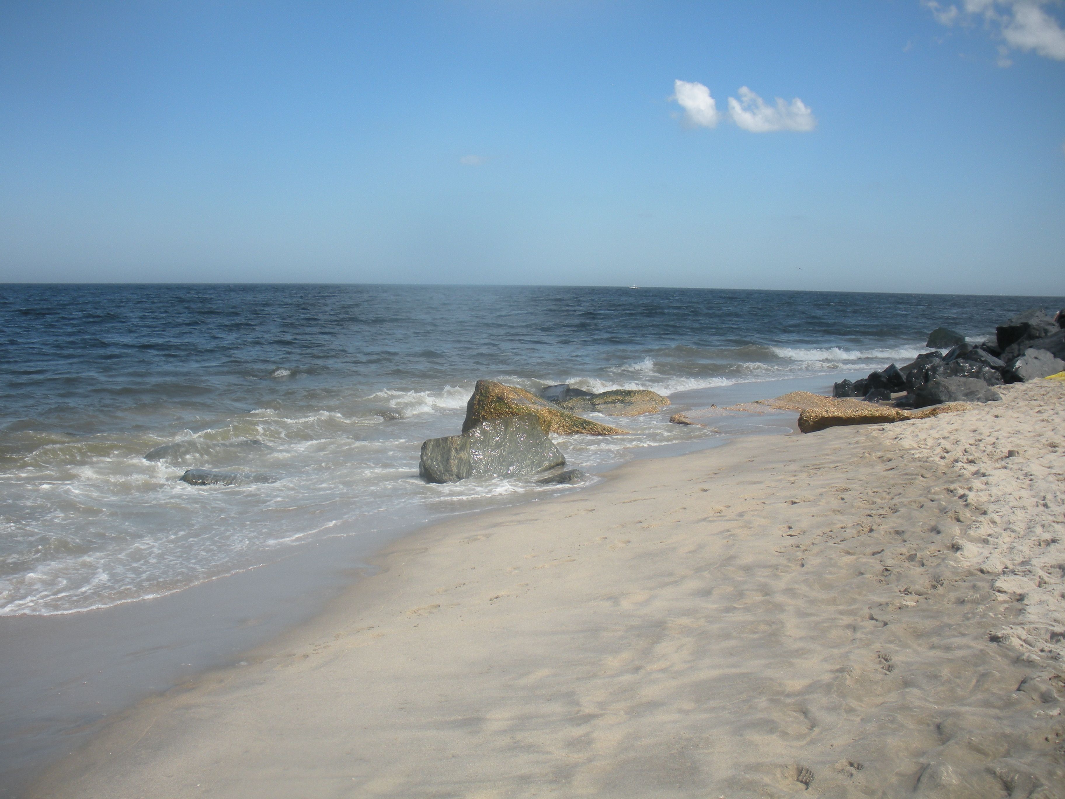 The above photo is of Sandy Hook, NJ. My favorite “local” beach. It hurt my heart to go there, seeing the damage still in evidence from Hurricane Sandy. I’m impressed and amazed at how much it’s been fixed up over the last months, and the road on the Hook is now smoothly paved. But you still see many businesses closed or closing on the highway leading to it, and the bathrooms are still out of commission. No thanks, Johnny on the Spot. I’ll skip the porta-potty and just clench those kegels until I get back home.