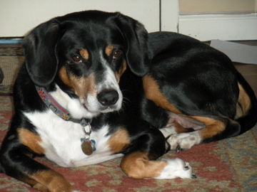 He’s a pest. He can jump seven feet straight up into the air to leap a fence, grab a chicken, or put his face into the face of someone he doesn’t think should be too close to his family. One year we went on vacation, and Sister In Law, whom he adores, took care of him. She took him to doggie day care while she went to work so he wouldn’t be lonely. He jumped the fence in their backyard, and waited there until she returned at the end of the day, howling only once he heard her voice. He cries and bays if I walk away from him at any time for any reason when out in the street, even if it’s Husband holding his leash. He howls and bays if we’re all outside, to warn the world that his charges are coming through and they’d best move out of the way. But he’s our pest, and we love him, adore him, and the work he does for Flower Child is priceless.